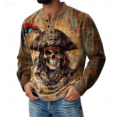 Miesten Kuvitettu Henley-paita T-paita Tee Pitkähihainen Muoti Päivittäin Vintage-tyyli Kausaliteetti Pyhäpäivä Bile Syksy 봄 & Syksy Tumman ruskea Henley Henley T-paita