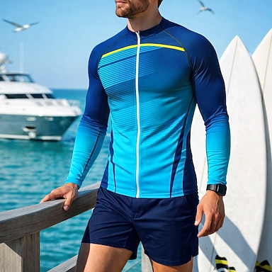 Miesten Vakio Ihottumissuoja Uimapaita Geometrinen Kaltevuus Värien estäminen Sulkea jnk vetoketju UPF50+ UV suoja Nopea kuivuminen Pitkähihainen Uima-asut Rash guard -suojapaita Lainelautailu
