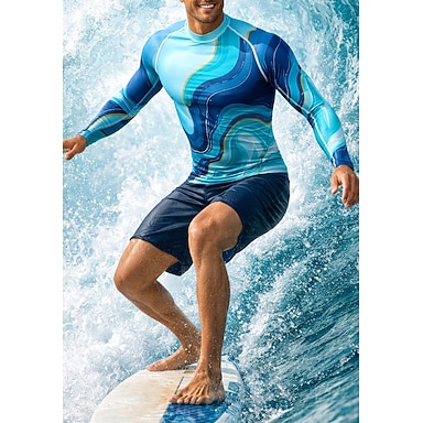 Miesten Vakio Ihottumissuoja Uimapaita Värien estäminen UPF50+ UV suoja Nopea kuivuminen Pitkähihainen Uima-asut Rash guard -suojapaita Lainelautailu Melonta Hiekkaranta Kesä