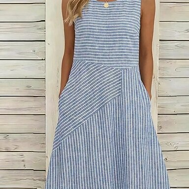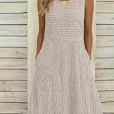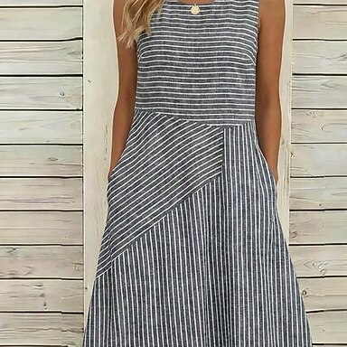 Naisten Midimekko Rento mekko A linjainen mekko Tyylikäs Vapaa-aika Päivittäin Loma Loose Fit Raita Lyhythihainen Tiukka pyöreä kaula-aukko Harmaa Vaalean sininen Kesä Kevät