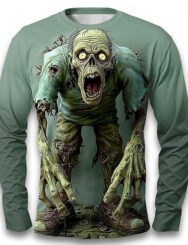 Miesten Zombeja 3D T-paita Pitkähihainen T-paita 3D-tulostus Tiukka pyöreä kaula-aukko Paita Muoti Liioiteltu Katu Kausaliteetti Päivittäin Sininen Vihreä 2# Apila Kesä Kevät Syksy Vaatetus S M L XL