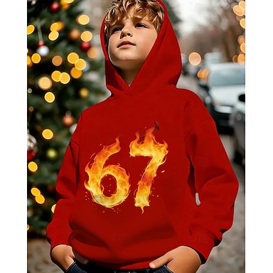 Sukupuolineutraali 3D Kuvitettu Hauska slangi 67 Huppari Pullover Pitkähihainen 3D-tulostus Kevät Syksy Urheilu Muoti Katutyyli Lapset 4-12 vuotta Hupullinen Kausaliteetti Päivittäin ulko- Normaali