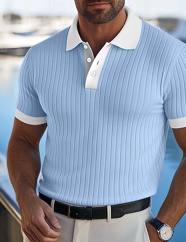 Miesten Golfpaita Golf poolopaidat Kausaliteetti Työ Kauluskäänne Lyhythihainen Perus Moderni Väripalikka Tavallinen Tilkkutäkki Napit Kesä Kevät kesä Tyköistuva Sininen Järven sininen Musta