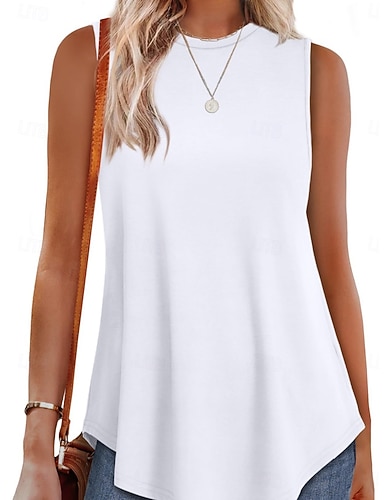 Naisten Paita Tyylikäs Muotitietoinen Satiinitoppi Yhtenäinen väri Tyylikäs Seksikäs Vapaa-aika Hihaton U kaula-aukko Tavalliset topit Päivittäin Bile Musta Valkoinen Kesä Kevät