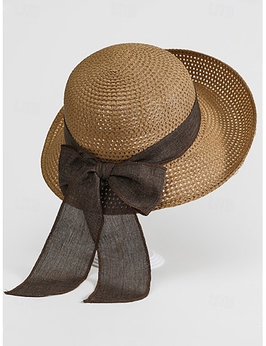 Naisten boheemi kudottu aurinkohattu, taitettava, leveälierinen olkihattu rusettikoristeella useissa väreissä rantalomaan, päivittäiseen vapaa-ajan käyttöön, matkoille ja kesälomakohteiden tyyliin