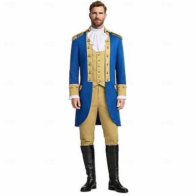 Setti Retro / vintage Keskiaika Asut Pitkähihainen George Washington Naamiaispuku Miesten Karnevaali puku Halloween Karnevaali Karnevaali Itsenäisyyspäivä 4. heinäkuuta Aikuisten Takki Pusero Housut