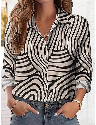 Naisten Paita Napit Painettu Kuvitettu Geometrinen Abstrakti Vintage Tyylikäs Moderni Pitkähihainen Paitapuserokaula-aukko Tavalliset topit Päivittäin Khaki Kesä Kevät