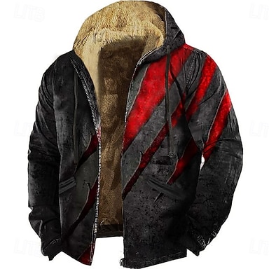 Miesten Kettu Susi Fleece Huppari Takki College Muoti Tyylikäs Päivittäin Vintage retro Hupullinen ulko- Metsästys Musta Ruskea Ruskea 2 Vetoketju Tasku Syksy Talvi Suunnittelija S M L XL XXL XXXL