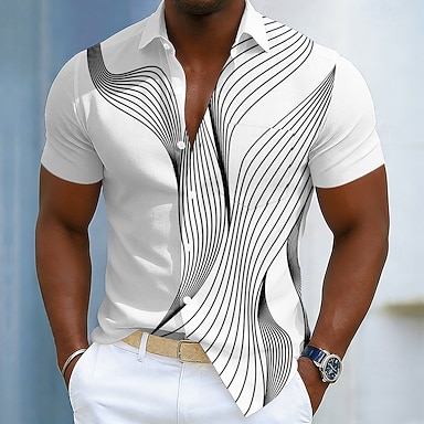 Miesten Geometrinen Aaltokuvio Abstrakti taide Paita Kesä paita Button Up paita Lyhythihainen Muoti rento ulko- Loma Arkikäyttö Kesä Kevät Sänkyjen avaus 3D-tulostus kauluspaidat Edessä yksi tasku