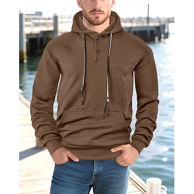 Miesten Huppari Vohvelihupparit Pullover-huppari Musta Valkoinen Khaki Vaaleanharmaa Tumman harmaa Hupullinen Tavallinen Laskostettu Tilkkutäkki Textured Urheilu ja ulkoilu Kausaliteetti Päivittäin