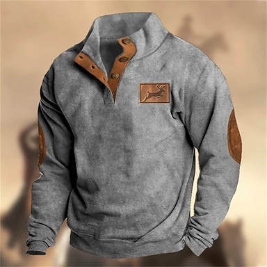 Miesten College Pullover-huppari Aja sivuun Button Up -huppari Metsästyshuppari Khaki Harmaa Pystykaulus Tavallinen Tilkkutäkki Urheilu ja ulkoilu Kausaliteetti Päivittäin Katutyyli Tyylikäs