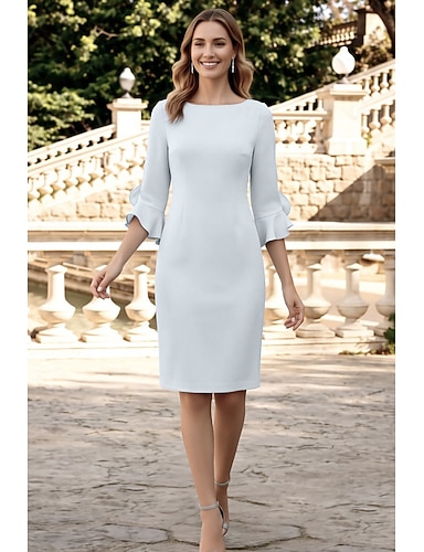 Sheath cocktail-mekot minimalistinen mekko cocktail-juhliin polven pituinen 3/4-pituiset hihat jalokiven kaulalla syksyn häävieras chiffonilla frillalla