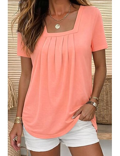 Naisten Pusero Rypytetty Yhtenäinen väri Tyylikäs Perus Vapaa-aika Lyhythihainen Laskostettu kaulus Tavalliset topit Päivittäin Musta Samppanja Punastuvan vaaleanpunainen Apila Beesi Kesä Kevät
