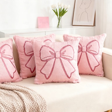 vaaleanpunainen rusettityynynpäällinen 2d litteä kuviollinen pehmoinen heittotyyny koristeellinen tyyny sohvalle olohuoneeseen ystävänpäivän koristetyyny pehmeä mukava heittotyyny sänkyyn tai sohvalle
