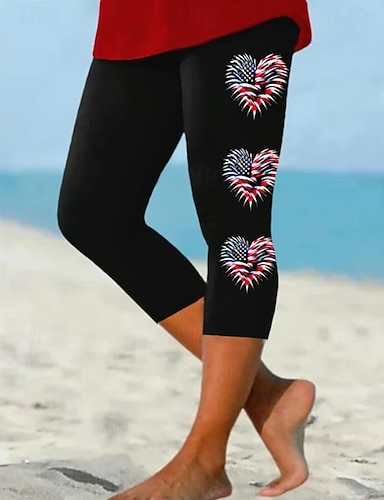 Itsenäisyyspäivä Isänmaallinen T-paita Naisille Leggingsit Lomakesä Vintage Etninen tyyli Koko Pituus Korkea Vartalo Housut Kukkagraafinen Kansallinen Lippu 3D Painatus Mukavuus Nopea Kuivuminen