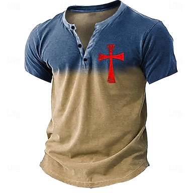 Miesten Risti T-paita Henley-paita Lyhythihainen 3D-tulostus Suunnittelija Retro / vintage Kausaliteetti Päivittäin Katu Kesä Kevät Khaki Harmaa Henley Henley T-paita
