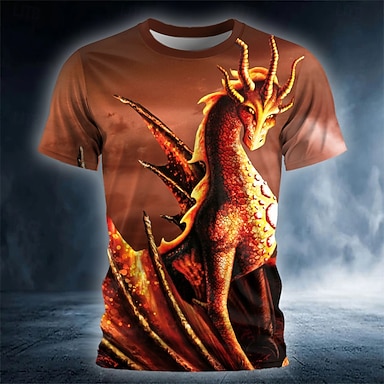 Miesten Lohikäärme T-paita Lyhythihainen T-paita 3D-tulostus Tiukka pyöreä kaula-aukko Paita Suunnittelija Goottityyli Juhla Katu Kausaliteetti Musta 1 Musta Kesä Kevät Vaatetus S M L XL XXL XXXL