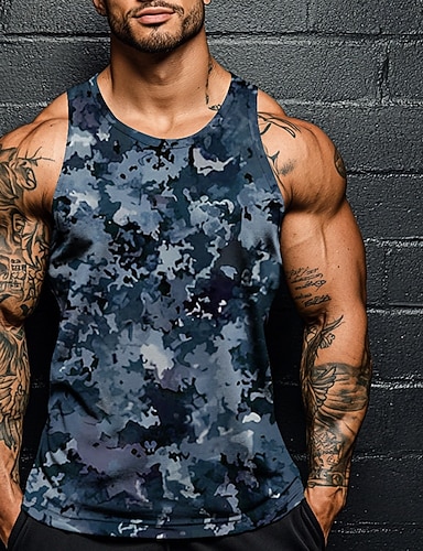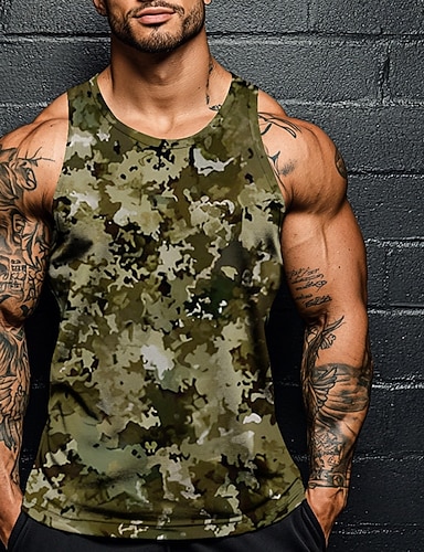 Miesten Käsipaino Liivin toppi Hihaton T-paita 3D-tulostus Tiukka pyöreä kaula-aukko Paita Urheilu Muoti Päivittäin Jumppa Musta Valkoinen Khaki Kesä Kevät Vaatetus S M L XL XXL XXXL