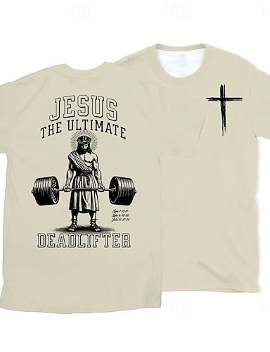 Pääsiäinen Miesten Jeesus kristillinen T-paita Lyhythihainen T-paita 3D-tulostus Tiukka pyöreä kaula-aukko Paita Suunnittelija Vapaa-aika Juhla Pyhäpäivä Harmaa Kesä Kevät Vaatetus S M L XL XXL XXXL