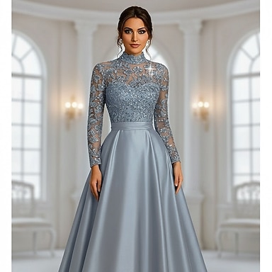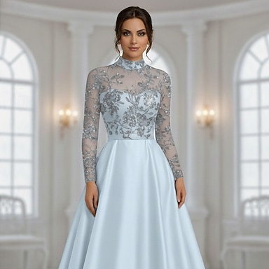 A-linja Kokopitkä Helmillä koristeltu Muodollinen mekko Morsiamen äidin mekko Iltapuku Tanssiaispuku hameen päällä Muodollinen mekko Tyylikäs Kimaltava Silkkinen Pitkähihainen poolokaulus Häät