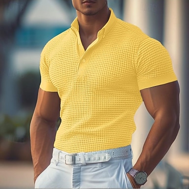Miesten Vohveli poolopaidat Textured Kausaliteetti Pyhäpäivä Kauluskäänne Neljänneksen postinumero Lyhythihainen Muoti Perus Tavallinen Vetoketju Kesä Normaali Keltainen Vohveli poolopaidat