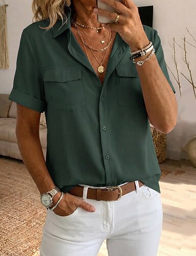 Naisten Kesä paita Pusero Tasku Napit Yhtenäinen väri Tavallinen Tyylikäs Vintage Lyhythihainen Sänkyjen avaus Tavalliset topit Päivittäin Työ Apila Kesä Kevät
