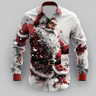 Christmas Miesten Joulupukki Paita Button Up paita Pitkähihainen Vapaa-aika Juhla-iltavaatteet Päivittäin Syksy Talvi Kevät kesä Paitapuserokaula-aukko Painike ylös 3D-tulostus Sininen Keltainen