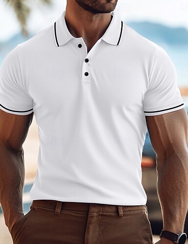 Miesten Golfpaita Golf poolopaidat Työ Kausaliteetti Kauluskäänne Lyhythihainen Perus Moderni Tavallinen Napit Jakardi Kesä Kevät Normaali Musta Valkoinen Laivaston sininen Khaki Harmaa Vaalean