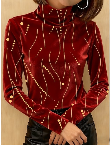 Naisten T-paidat Painettu Porrastettu Kuvitettu Geometria Tyylikäs Vintage Muoti Pitkähihainen Poolokaulus Tavalliset topit Päivittäin Bile Viikonloppu Viini Laivastosininen Purppura Apila Syksy
