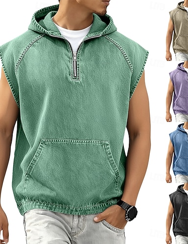 Miesten Hihaton Liivin toppi Demin paita Happopesupaita Hihaton Hupullinen Vetoketju Kesä Kevät Tavallinen Muoti Suunnittelija Perus Vaatteiden värjäys Hupullinen Kausaliteetti Loma Katu Vaalean