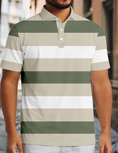 Miesten Viiva Polo Lyhythihainen Poolopaidat Kauluspaidat Business Casual ulko- Urheilu- ja treenivaatteet Arki-asut Tasku 3D-tulostus Napit Kesä Apila