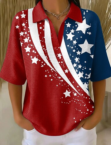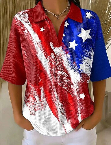 Amerikan itsenäisyyspäivä Miesten Amerikan lippu Golf Urheilu poolopaidat Lyhythihainen Poolopaidat Kauluspaidat Vapaa-aika Urheilu- ja treenivaatteet Napit Kevät kesä Rubiini Apila