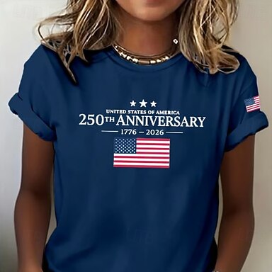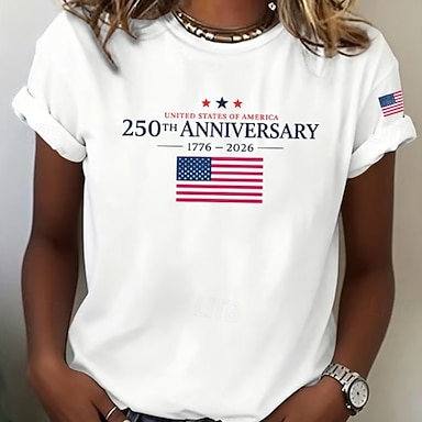 Amerikan itsenäisyyspäivä Naisten T-paita Painettu Kuvitettu Amerikan lippu Vintage Tyylikäs Klassinen Lyhythihainen V kaula-aukko Tavalliset topit Päivittäin Vaalean ruskea Kesä Kevät
