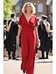 Haalarit Kokopitkä Morsiammen äidin asu Lyhythihainen V kaula-aukko Tyylikäs Yksinkertainen Häävieras valmistuminen Joustava kangas kanssa Solid Color