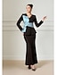 Naisten 2-osainen puku Muodollinen Häävieras Tyylikäs Vintage Yksinkertainen Pitkähihainen Kokopitkä Lovitetut käänteet Yksirivinen