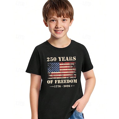 100% puuvilla Lapset Poikien Musta Kuvitettu Yhdysvaltojen lippu 250-vuotisjuhla T-paita Pusero Tiukka pyöreä kaula-aukko Lyhythihainen ulko- Arkikäyttö Muoti Katutyyli Suunnittelija Tulostus Kesä