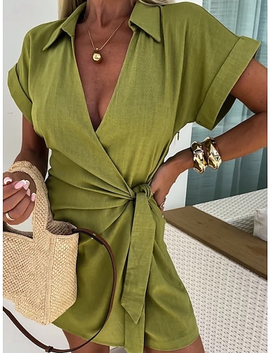 Naisten Leikkipuku Tyylikäs Yhtenäinen väri Lyhythihainen Roikkuva shortsit V kaula-aukko Tilkkutäkki Päivittäin Loma Normaali Rubiini Ruskea Apila Kesä