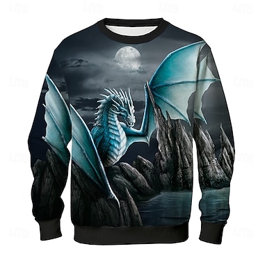 Miesten College Musta Tiukka pyöreä kaula-aukko Lohikäärme Painettu Kausaliteetti Juhla Urheilu 3D-tulostus Vapaa-aika Syksy Talvi Vaatetus Hupparit paidat Pitkähihainen