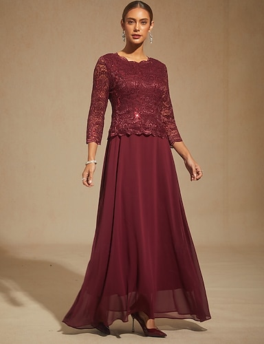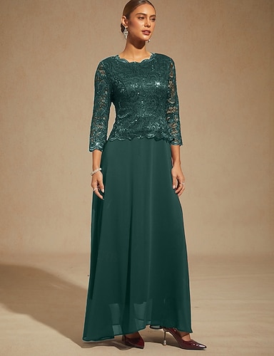 Naisten Maksimekko Sifonki Mekko Tyylikäs Häävieras Paljetti Pitsi Yhtenäinen väri 3/4 hiha Tiukka pyöreä kaula-aukko Papukaijan sininen