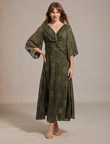 Naisten Maksimekko Sifonki Mekko Tyylikäs Päivittäin Loma Häävieras Solmittava Kukka 3/4 hiha V kaula-aukko Laivaston sininen