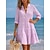 Naisten Mini mekko Pellavasekoite Paitamekko Puuvillaiset pellavamekot Pellava mekko Vapaa-aika Päivittäin Loma Normaali Raita 3/4 hiha Paitapuserokaula-aukko Punastuvan vaaleanpunainen Kesä