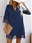 Naisten Mini mekko Väljä mekko Vapaa-aika Päivittäin Normaali Tavallinen 3/4 hiha V kaula-aukko Sininen Musta Rubiini Syksy