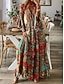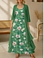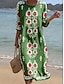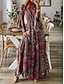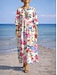 Naisten maksimekko pellavanomainen hengittävä kevyt kesämekko vaihteleva mekko A-linjainen mekko kesämekko lomakäyttö rento boho päivittäinen ranta lomapäivitys kukkakuvio 3/4-pituiset hihat pyöreä