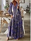 Naisten Mekkosetti Maksimekko A linjainen mekko Loma Boheemi Kukka Kuvitettu Monitaso Painettu Maksimekko 3/4 hiha V kaula-aukko Päivittäin ulko- Sininen Purppura Apila Kevät Syksy Normaali