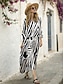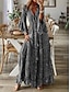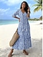 Naisten Pitkä mekko Maxi mekko Rento mekko Painatus mekko Muoti Moderni Päivittäin Hiekkaranta Viikonloppu Normaali Kuvitettu 3/4 hiha V kaula-aukko Sininen Harmaa Kevät Syksy