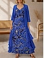 Naisten Maksimekko Mekkosetti A linjainen mekko Loma Vapaa-aika Boheemi Normaali Kukka Kuvitettu 3/4 hiha V kaula-aukko Sininen Punastuvan vaaleanpunainen Apila Kesä Kevät Syksy Talvi
