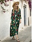 Naisten Pitkä mekko Maxi mekko Kellomekko Kukka mekko Painatus mekko Muoti Moderni ulko- Loma Pyhäpäivä Normaali Kukka 3/4 hiha V kaula-aukko Sininen Apila Beesi Kesä