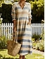 Naisten Midi-Mekko Pellavamaista Hengittävää Kevytrakenteista Aurinkomekkoa A-linjainen Mekko Loma Rentoa Boho Ranta Lörppömallia Graafista Geometriaa 3/4 Pituista Hihata V-kaula-aukolla Sininen