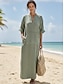 Naisten Pitkä mekko Maxi mekko Maksimekko Keinopuuvillainen pellava Paitamekko Kaftaanimekko Valkoinen mekko Klassinen Vapaa-aika Päivittäin Loma Loose Fit Tavallinen 3/4 hiha Paitapuserokaula-aukko