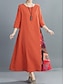 Naisten Maxi Mekko Pellavalta Näyttävä Hengittävä Kevyt Aurinkomekko Siirtomekko A-linjainen Mekko Kesämekko Loma Rentoa Boho Päivittäin Ranta Loma 3/4 Pitkät Hihat Crew Kaula-aukko